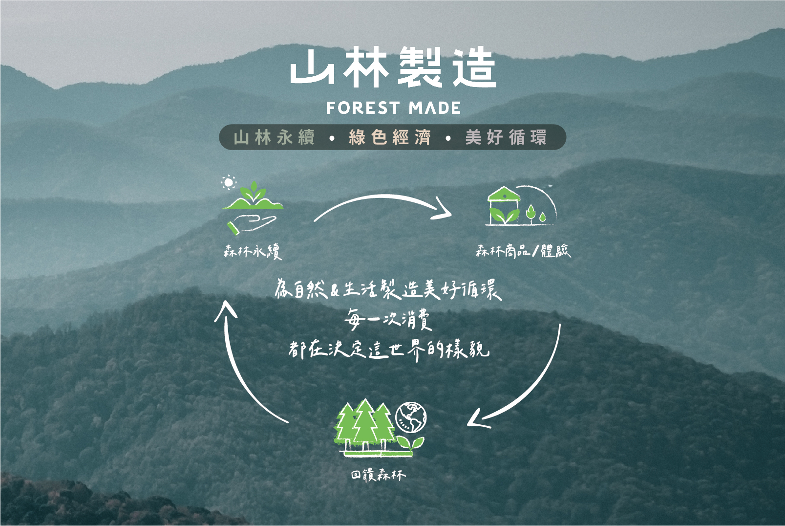 『山林製造』整合林業保育署26處森林賣店通路,以及山林永續業者的商品,促進多方品牌共同推動永續林業經濟,確保多樣化的森林生態系服務價值,支持與認同山村部落在地文化,循環使用自然資源,並將收益持續回饋山林,為台灣最大的山林永續消費品牌 。
